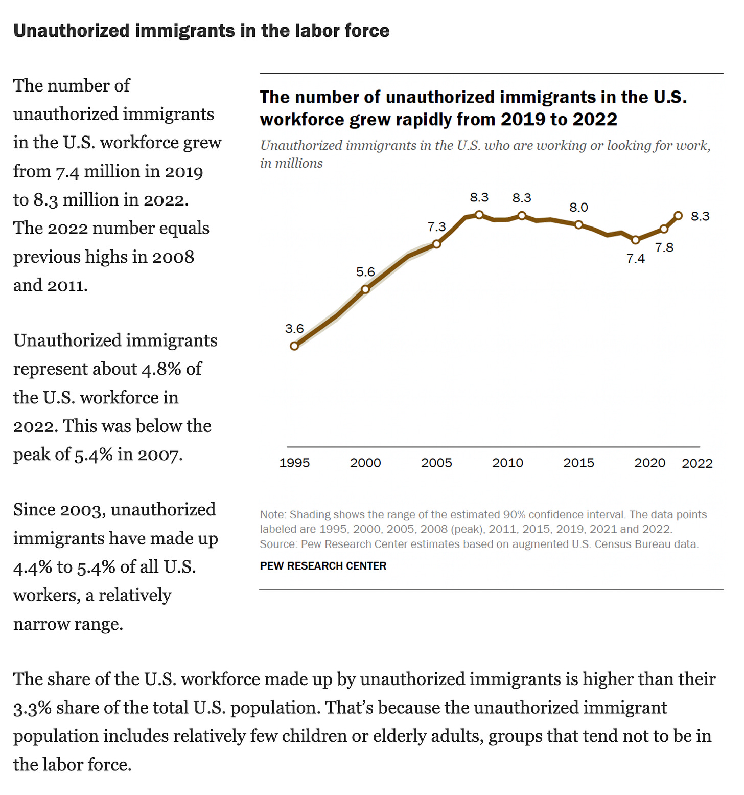 As the above Pew Research Center article shows, most of the 11 million illegal immigrants are in the labor force: