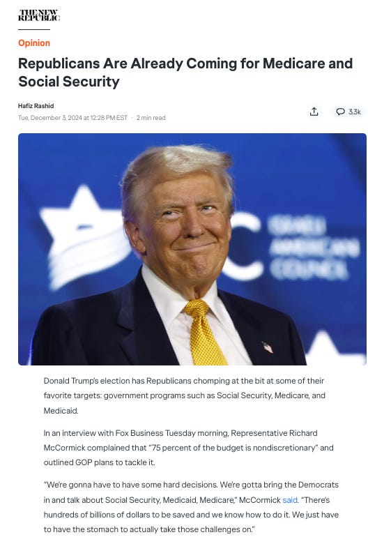 NOTE!!! The purpose of the deportations is NOT to actually deport all 11 million illegal immigrants. The purpose is to whip up a war of have-nots against have-nots: divide-and-rule.1 Quite possibly it is intended to prevent the have-nots from having sufficient solidarity to prevent the cuts in Social Security and Medicare that Trump seems prepared to make: