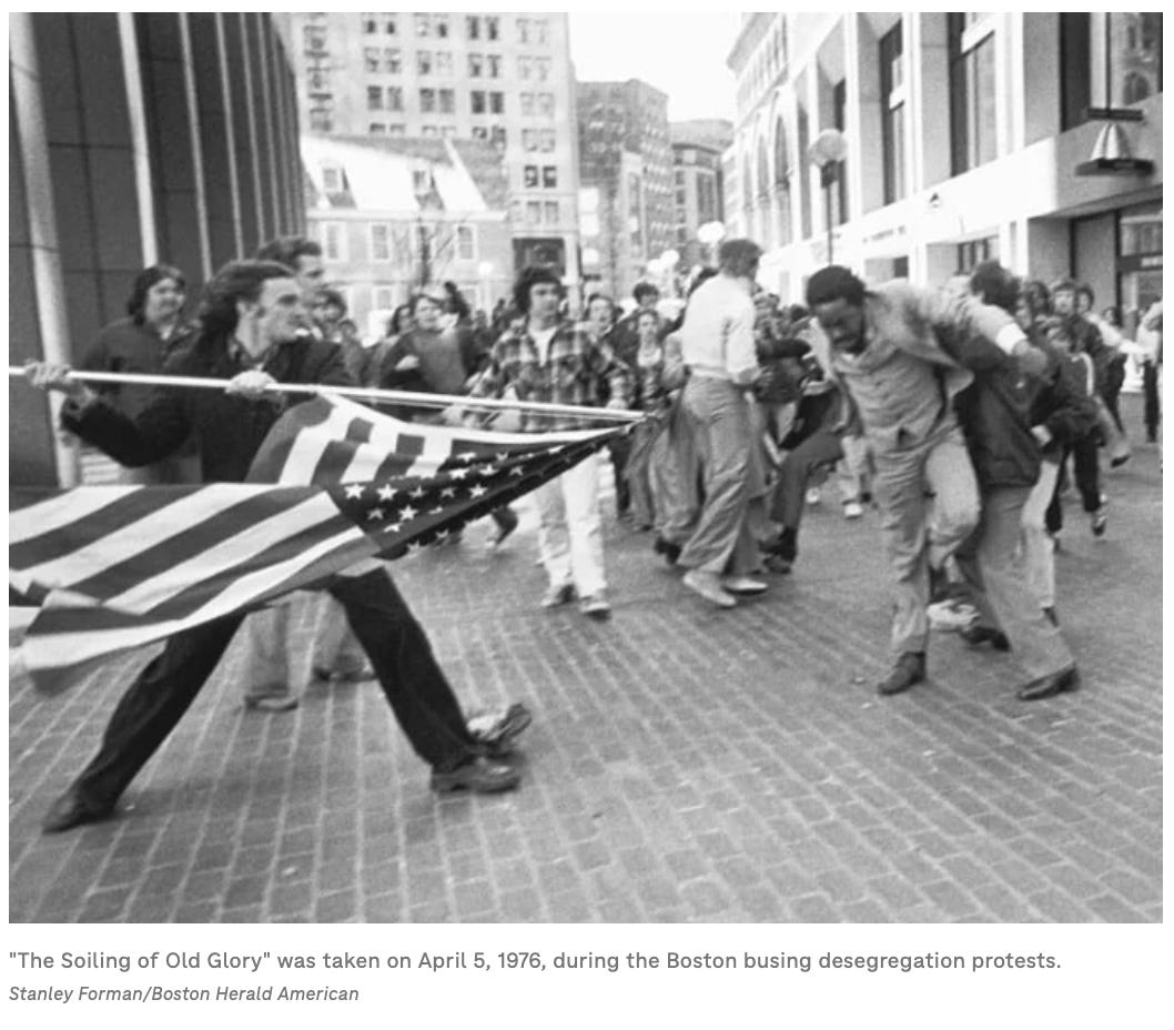 An example of how the plutocracy whipped up a race war while pretending to do the opposite is the race war it whipped up in the 1970s with the school busing crisis in Boston. The plutocracy, in the persons of liberal Federal Judge Garrity and overtly racist School Committee Chairwoman Louise Day Hicks, framed the noble idea of school racial integration this way. Garrity said the only way to integrate the schools was with a busing plan that maximized--totally unnecessarily!--the length of bus rides for little children to an absurd degree that was designed to elicit anger from any affected parent, no matter how much they may have even supported the goal of racial integration. Whites who objected were labeled racists, and blacks who objected were labeled Uncle Toms by the major Boston newspaper. The absurd busing plan was a gift from the liberal Judge Garrity to the overtly racist Hicks, who organized white opposition to the plan on the racist idea that the conflict was blacks versus whites. Racial violence occurred. I myself had stones thrown at me. The plutocracy decried it, while insisting that it only wanted that noble goal of racial integration.